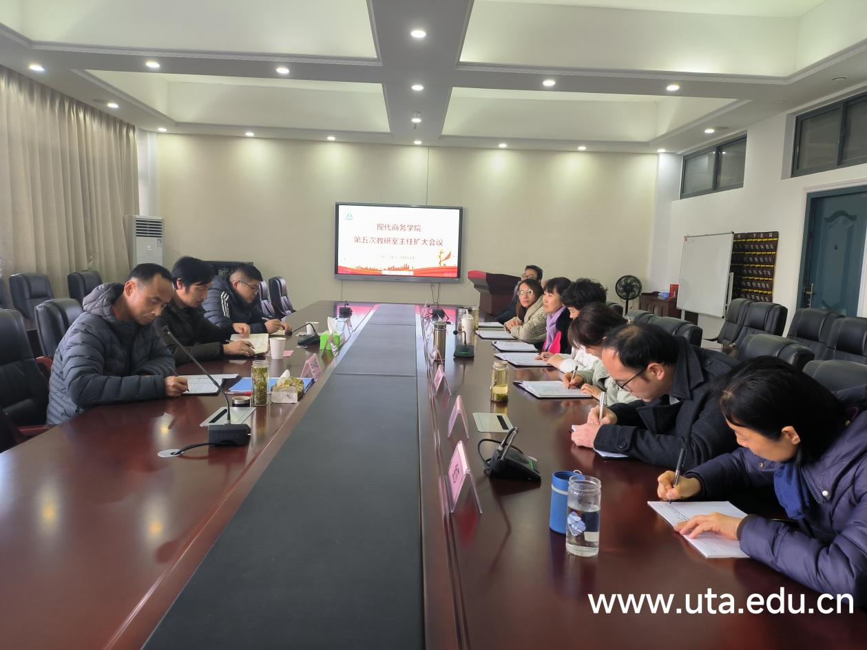 为进一步促进学院专业建设发展,改革创新人才培养模式,12月6日,教务处处长袁春雨、教师陈钊来现代商务学院调研指导工作。现代商务学院党总支副书记许兴旺、副院长杜淑琳、教研室主任及相关专业教师参加会议。会议由许兴旺主持。