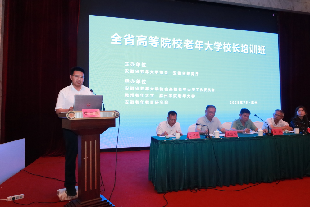 7月28日至30日,全省高等院校老年大学校长培训班在滁州市举行,本次培训班由省老年大学协会、省教育厅联合举办,省老年大学协会会长陈先森、省教育厅职成处处长饶庆眉、协办单位领导、各高校老年大学负责人等出席了开班仪式。我校老年大学负责人等参加了本次培训并在总结汇报会上作交流发言。