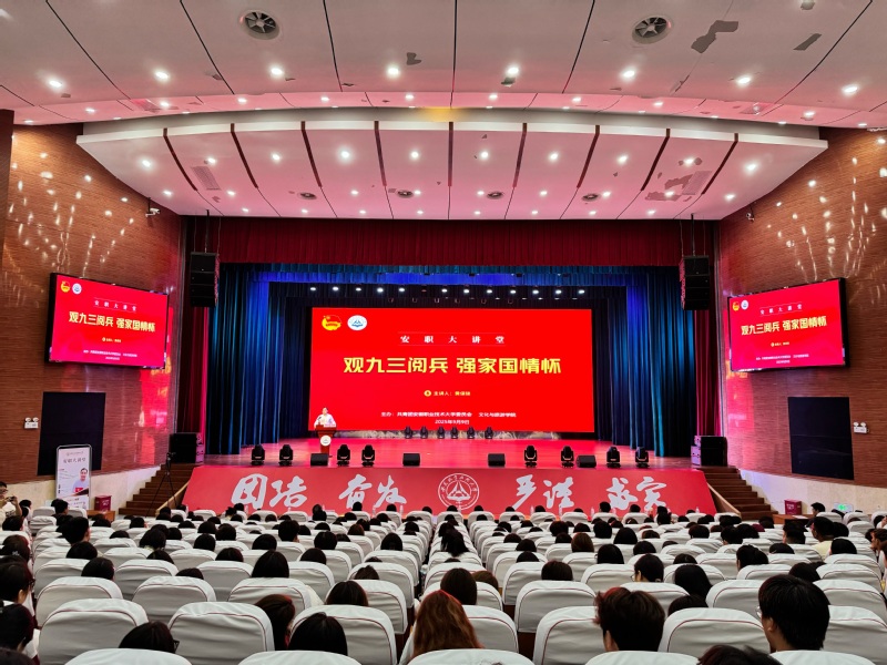 黄保锁以“观九三阅兵 强家国情怀”为主题,从三个维度深刻分享了九三阅兵的内涵与时代价值,生动讲述了人民军队在抗战中孕育的伟大精神及其在新时代的赓续发扬,激励青年学子传承红色基因,弘扬爱国主义精神,将个人理想融入国家发展伟业,并主动对接家国情怀与乡村振兴战略。他特别指出,岸香创新农文旅产业学院不仅是校企协同的平台,更是理念共融、价值共创的育人高地,通过深层次的产教融合,共同培养面向未来、担当使命的高素质人才,为实现安职大高质量发展和服务安徽现代化建设注入持续动能。他鼓励学生积极投身农文旅融合产业,将“消费者共享、农民共富、企业共创、政府共赢”的“四共”理念融入未来实践,运用所学技术技能助力乡村产业发展,在新时代乡村振兴中贡献青春力量,并寄语青年学子:铭记历史,始终不忘来路艰辛;守护和平,坚定不忘初心使命,用吾辈之青春捍卫盛世之中华。整场讲座精彩生动、引人入胜。青年学子们表示,以往仅在书本上感知的历史变得鲜活立体,大家对国家安全、乡村振兴和自身责任有了更深层次的理解和认同。