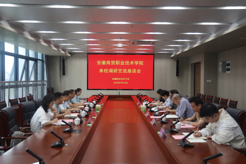 本网讯(党委宣传部)9月18日,安徽商贸职业技术学院党委副书记黄继胜一行来校调研交流,校领导李荣富热情接待了来宾,相关职能部门负责人参加会议。会议由李荣富主持。