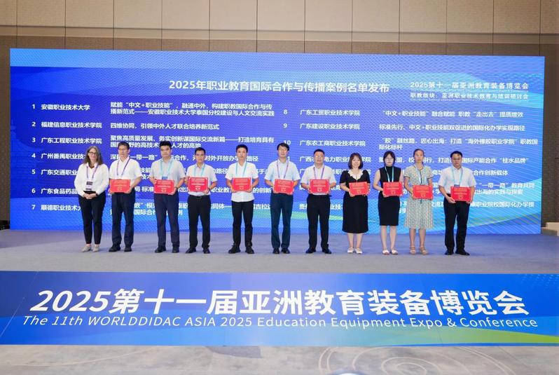 此外,学校申报的《构建职教国际合作与传播新范式——安徽职业技术大学泰国分校建设与人文交流实践》案例,成功入围“2025年职业教育国际合作与传播”优秀案例,杨林国代表学校上台领奖。