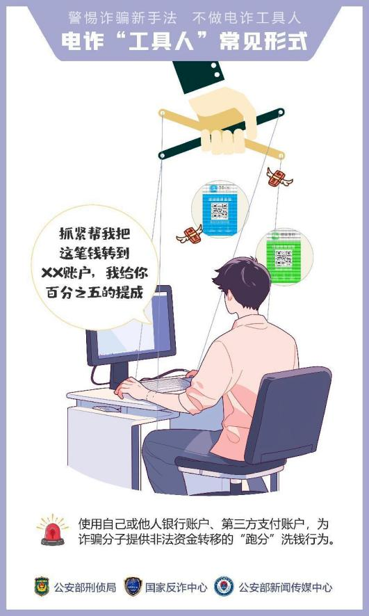 电诈手法多种多样,电诈“工具人”也种类繁多,有供卡类、金融支付工具类、转移案款类、提供通信技术支持类等不同类型的“工具人”。