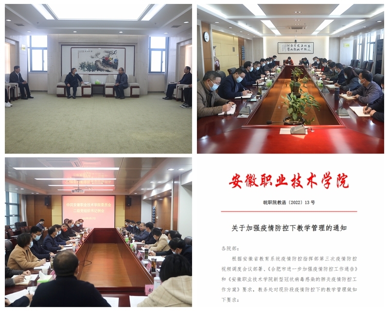 本网讯(党委宣传部通讯员 孙涛)自安徽省发布疫情信息以来,党委高度重视,深入贯彻习近平总书记关于疫情防控工作的重要讲话指示精神和中央政治局常委会会议精神,全面落实党中央、国务院决策部署,坚持人民至上、生命至上原则,认真按照教育部及省委、省委教育工委关于疫情防控工作的部署要求,把抓好疫情防控工作作为当前最大的政治任务,第一时间召开专题会议,完善应急预案,落实防控举措,确保广大师生员工生命安全和身体健康。