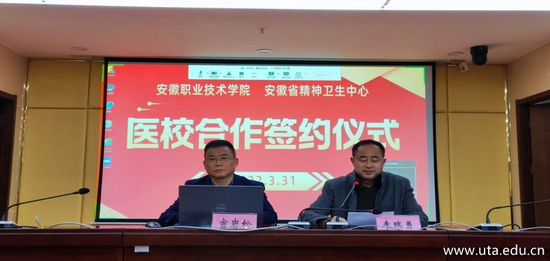 本网讯(学生处通讯员朱艳丽 杨珍)3月31日上午,我校与安徽省精神卫生中心在图文信息中心九楼会议室举行医校合作签约仪式,党委委员、副院长宣岩松代表学院与安徽省精神卫生中心主任、安徽医科大学硕士研究生导师季益富教授签订了医校合作协议,签约仪式由学生处处长李瑞勇主持。