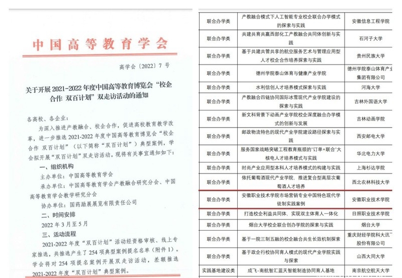 学院喜获中国高等教育“校企合作 双百计划”典型案例提名
