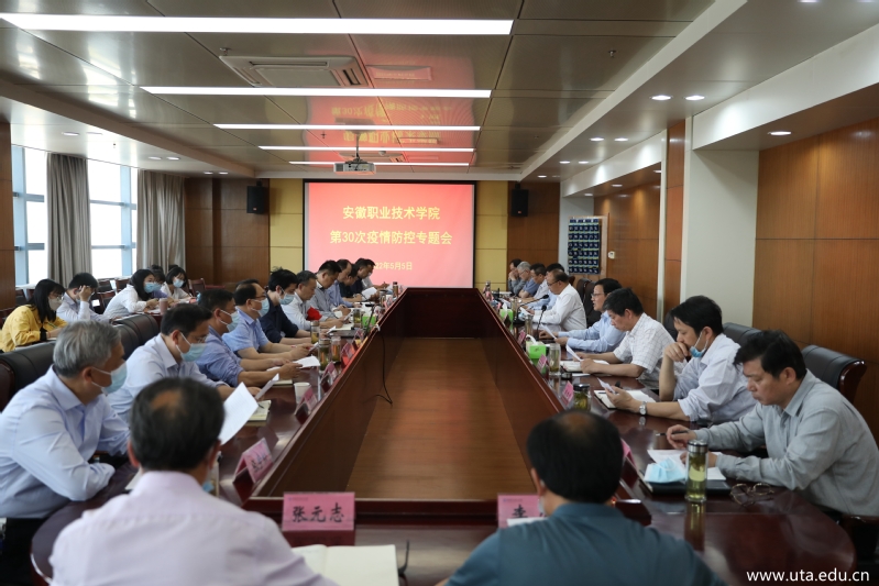 本网讯(校疫情防控办通讯员 方传宝 范静 方文文) 5月5日下午,学院在图文信息中心十楼会议室召开本学期第30次疫情防控工作专题会议,研究部署学院下一步疫情防控重点工作。党委书记李方泽,党委副书记、院长孙敬华,党委委员、副院长张智清,党委委员、副院长杨林国,党委委员、副院长宣岩松,党委委员、纪委书记李荣富,督导员郭淼、林葆春,党委委员、体育健康学院院长马纯出席会议,学院疫情防控工作领导小组成员参加会议。会议由李方泽主持。