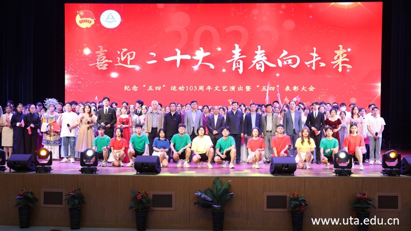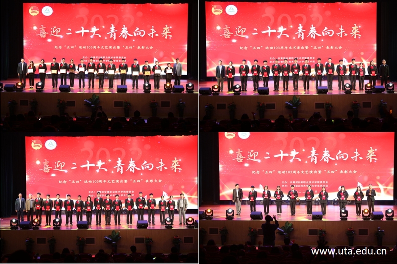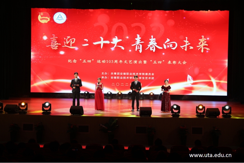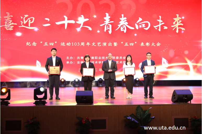 本网讯(院团委通讯员 蒯月亭 吕玥 江素华 张庚晨)为深入学习贯彻习近平总书记关于青年工作的重要思想,以实际行动迎接党的二十大胜利召开,庆祝建团100周年,积极培树典型,表彰先进,5月11日下午,学院在大学生活动中心举办“喜迎二十大 青春向未来”文艺演出暨“五四”表彰大会。党委书记李方泽,党委副书记、院长孙敬华,党委委员、副院长张智清,党委委员、副院长杨林国,党委委员、副院长宣岩松,督导员郭淼、林葆春,党委委员、体育健康学院院长马纯,各职能部门负责人,各二级学院党总支负责人、团总支负责人和学生代表参加活动。