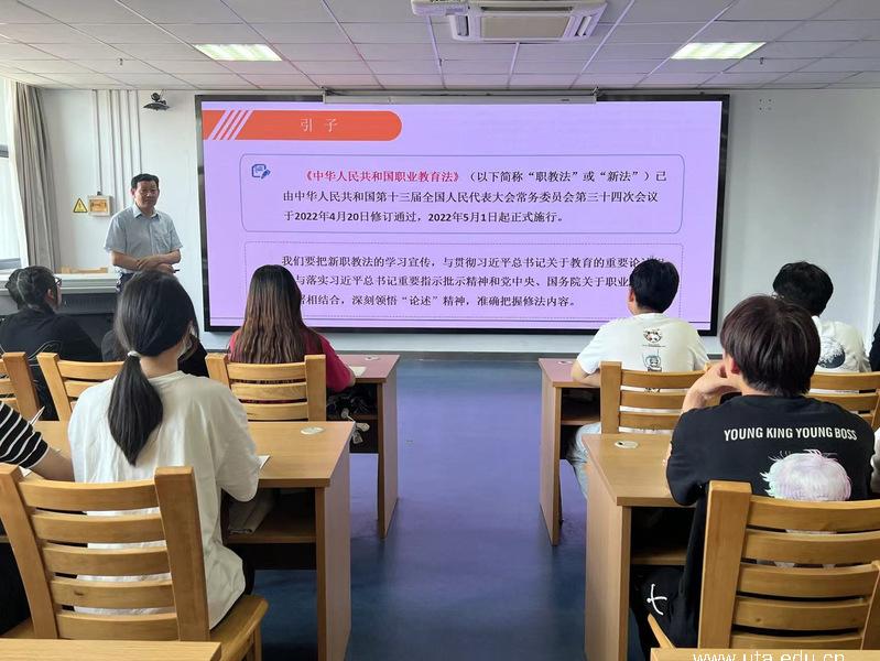 孙敬华强调,此次新修订的职业教育法是职业教育法完成近26年来的首次大修,从国家法律层面进一步明确职业教育是与普通教育具有同等重要地位的教育类型。他用深入浅出的语言、具体详实的资料和生动鲜活的案例分析了现代职业教育发展面临的新形势、新要求,围绕学院在深化产教融合、推进校企合作,完善职业教育保障制度和措施展开论述,并展望了我校高质量发展的新局面。
