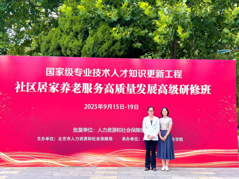 为深入贯彻落实国家积极应对人口老龄化战略,把握社区居家养老服务行业发展新趋势,2025年9月15日至19日,经由人力资源社会保障部批复和资助、北京市人力资源和社会保障局主办的“社区居家养老服务高质量发展”高级研修班顺利举办。安徽职业技术大学公共管理学院副院长朱凤丽、社区公益管理教研室教师卜凡莉获得参训资格,全程参与学习交流。两位教师还借研修契机赴同类高校开展专业调研,为学院相关专业发展汲取先进经验。
