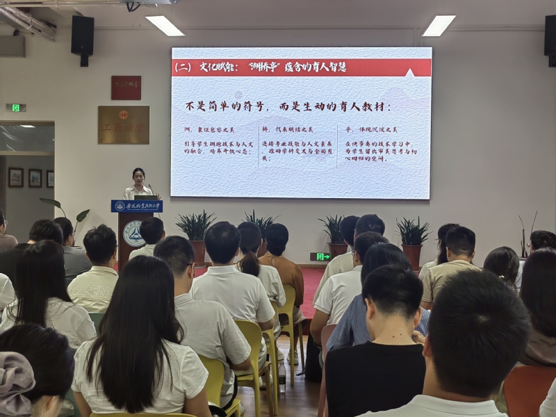 本网讯(工会)为深入贯彻落实立德树人根本任务,大力弘扬劳模精神、劳动精神、工匠精神,进一步强化职业教育在新时代的使命与担当,充分发挥工匠学院在高技能人才培养中的作用,让匠心育人融入到辅导员日常工作中去,2025年9月17日,工匠学院成功举办“工匠讲堂”2025秋季学期第一讲,邀请智能制造专职辅导员彭琳琳,为辅导员和年轻教师们带来了一场以“雕琢智造之美,铸造工匠之魂—— 辅导员工作以美育人的探索与实践”为主题的精彩分享。