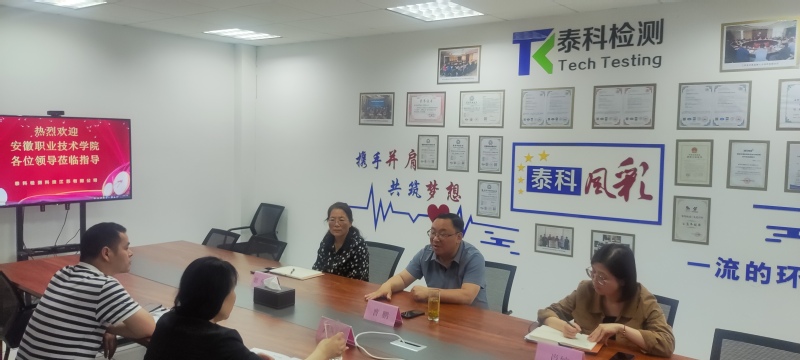 江苏扬农化工集团有限公司人力资源经理张瑜蓉、人力资源副经理娄洋洋,泰科检测科技江苏有限公司总经理曹鹏、技术总监姬俊梅对学院一行的到来表示了诚挚欢迎,并全面介绍了公司的业务运营状况,提出了对化工及环保专业毕业生和实践教学学生的用人需求,表达了精准对接学院需求、深度校企合作的愿望。