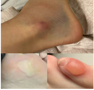 3.皮肤软组织损伤。如有水泡形成、破溃、湿疹等,及时到校医院就诊。