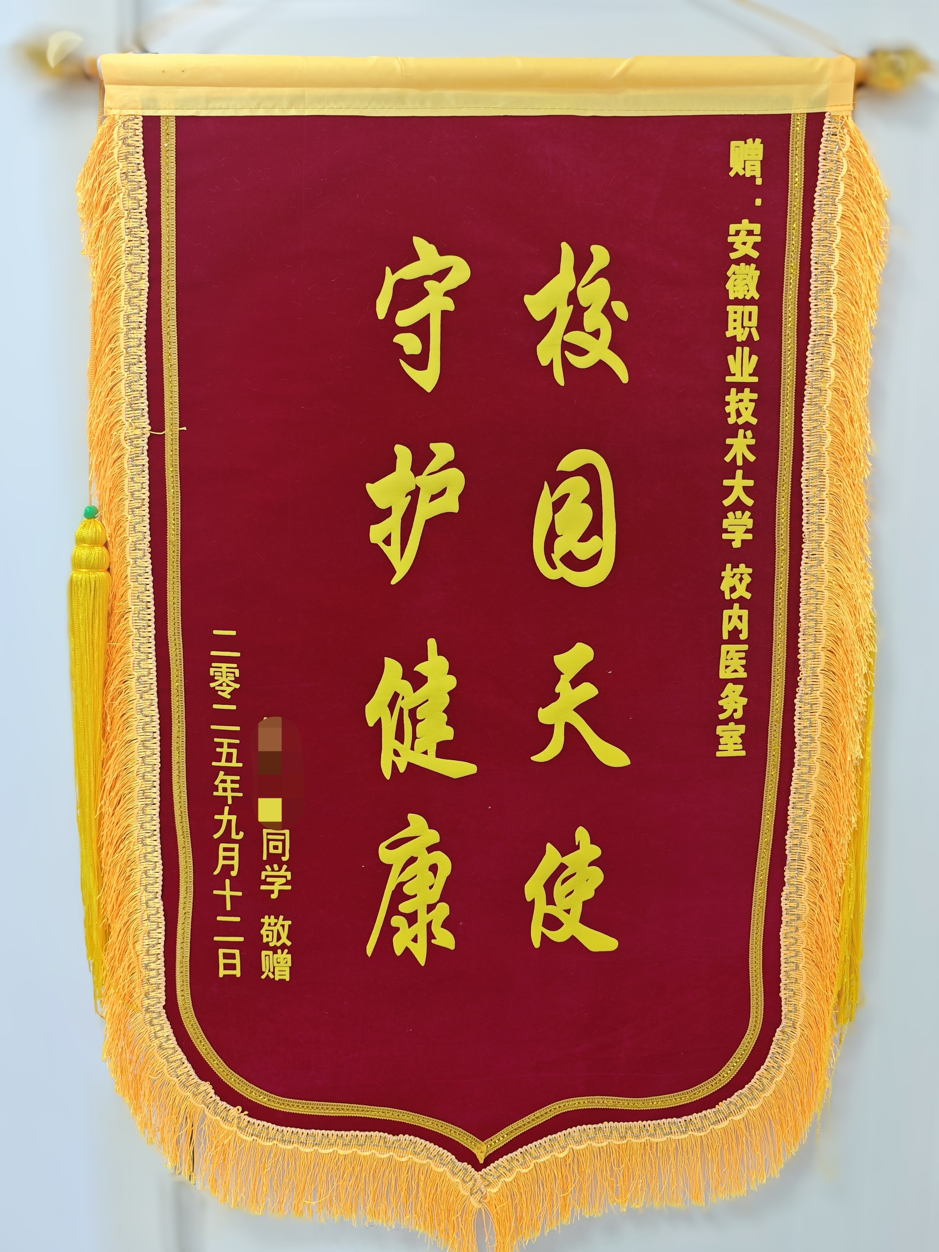 此后,该同学在上级医院接受系统的观察与治疗,身体各项指标逐步恢复正常,最终康复并顺利返校。9月12日,为表达对校医院医护人员的深切感激,该同学特地向校医院赠送锦旗一面,以彰医者仁心。