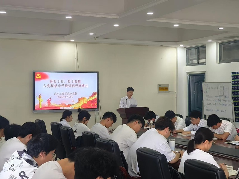 为深化入党积极分子思想政治教育,扎实做好党员发展工作,5月28日下午,汽车工程学院分党校在至毅楼309会议室举办了第43期、44期入党积极分子培训班开班仪式暨第1次授课。汽车工程学院副院长邹正军、党总支委员李宏林、组织员高原、学生党支部委员王婉芹及全体培训班学员参加了开班仪式。仪式由王婉芹主持。