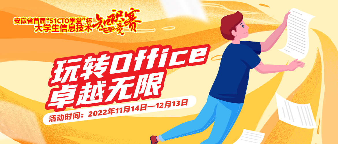 数字经济时代,数字化技术逐步渗透到社会经济生活的各个方面,高素质、强实战的数字化应用人才需求激增。高校学生在学习知识的同时,更应提升就业技能,适应新时代的人才发展需求。Office办公软件、计算机等级能力考试、PS等设计软件的应用等逐步成为各专业学生就业的必备技能,其中Office办公软件作为计算机的基础应用技能,尤为重要。此次安徽省首届“51CTO学堂”杯大学生信息技术知识竞赛活动旨在促进学生办公软件应用能力的提高,丰富校园文化氛围,拓展素质教育阵地,更好地展现学校信息技术教学的优良成果。现将活动详情介绍如下,真诚期待各位同学参与!