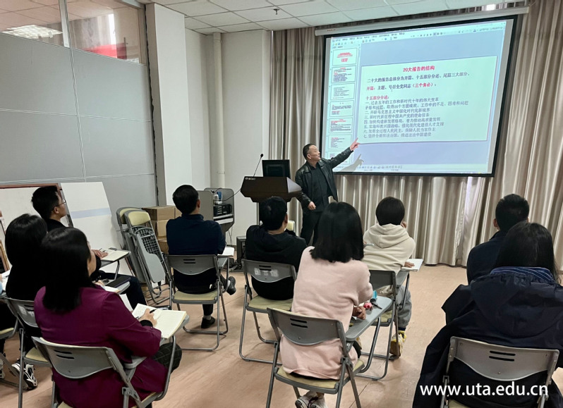 陈纲首先带领支部党员解读党的二十大报告。他从开篇、十五部分分述、尾篇三个板块对党的二十大报告作了深入浅出的解读。在分述第五部分《实施科教兴国战略强化现代化建设人才支撑》,陈纲结合实际工作,从办人民满意教育、科技创新体系、创新驱动发展、人才强国四个方面,逐字逐句,讲感受,谈收获。陈纲表示,一要全面贯彻党的教育方针,落实立德树人根本任务,做学生成长中的知心人,热心人,引路人。二要提高工作主动性,爱岗敬业,助力学院发展。三要加强师德师风建设,团结友爱,加强学习,打造学习型工作团队。随后陈纲带领支部党员学习中共中央关于《中国共产党章程(修正案)》的说明(摘录)。