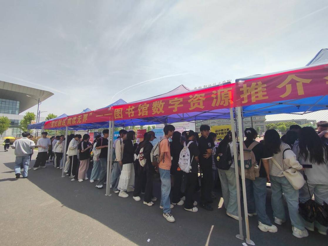 活动现场还设置了主题签名墙、线上活动二维码展架等互动环节。在图书馆工作人员和学生志愿者的有序引导下,参与者们积极扫码了解读书月活动,在签名墙上签名,并领取纪念礼品。整个活动流程井然有序,服务周到细致,获得了师生们的一致好评。