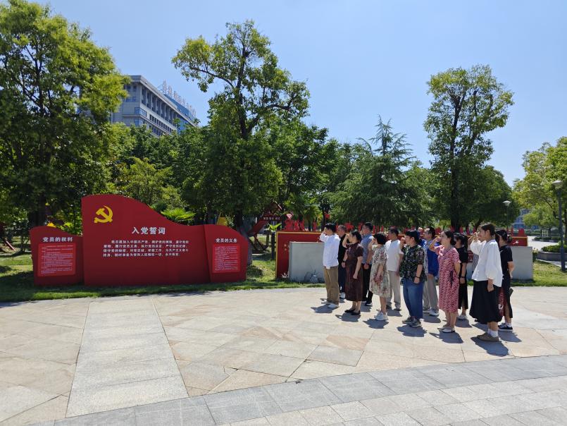 随后,党员同志们前往党建文化公园,面对鲜红的党旗,整齐列队,高举右拳,齐声重温入党誓词。“我志愿加入中国共产党……随时准备为党和人民牺牲一切,永不叛党!”铿锵有力的誓言响彻公园,彰显出对党的忠诚和为共产主义事业奋斗终身的坚定决心。