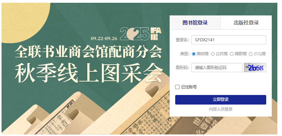 9月22日-26日,2025年秋季线上图采会已开幕,根据《关于图书馆组织参加2025年秋季线上图采会的通知》,为了精准匹配教学科研与师生阅读需求,确保2026年图书采购计划的科学性、实用性,现组织各部门、各二级学院参加2025年秋季线上图书采集。图书馆现整理了操作指南,具体操作流程如下: