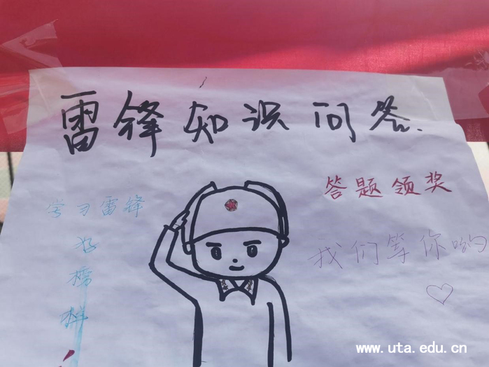 讲文明,树新风。活动期间,志愿者组织同学们参与雷锋知识问答,并在横幅上签名,向同学们宣传雷锋精神,加深同学们对雷锋精神的了解。