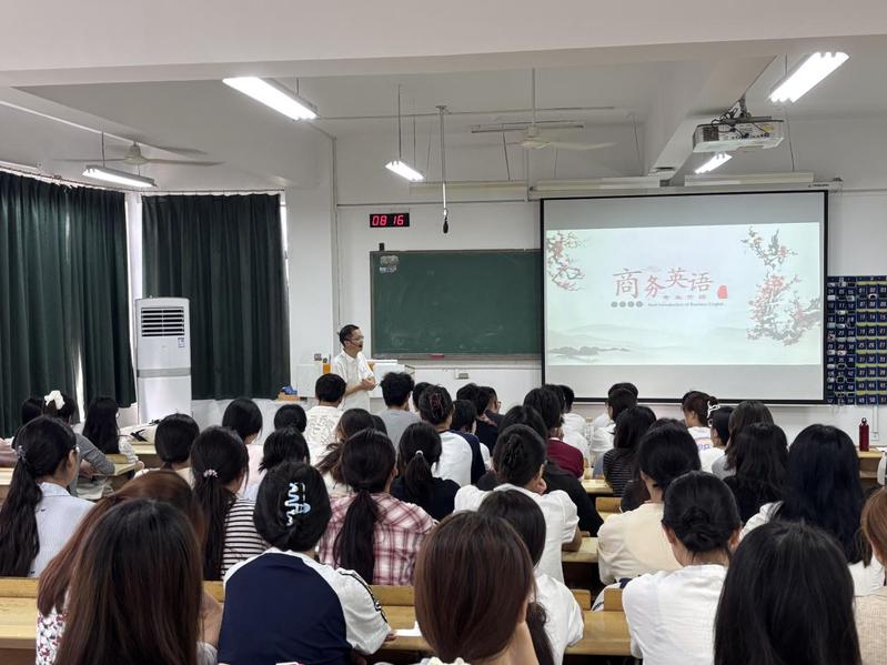 围绕“认知专业-规划职业-对标榜样”核心目标,搭建“学院讲解+企业指导+学长引路”三维指导体系,帮助新生快速理解专业内涵、锚定学业与职业发展方向。专业介绍环节,商务英语教研室主任吴平安凭借深厚的学科积淀,精准解读专业培养方案、课程体系逻辑、就业领域分布与学科竞争优势,让新生不仅知晓“学什么”,更理解“为何学”“如何学”,建立对专业的系统认知;企业导师见面会打破校园与职场的壁垒,通过与行业一线导师的深度交流,新生得以直观把握外语专业在跨境商务、国际交流等领域的职场需求与发展趋势,提前树立职业规划意识;优秀学子见面会则邀请英语2321班吴正冉、罗俊明分享实战经验——从高效学习方法、学科竞赛备赛技巧到升学就业选择考量,二人以亲身经历为新生提供可复制、可参考的成长范本,让榜样力量转化为新生奋进的具体方向。