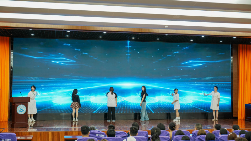 随后举行的入学教育启动仪式将现场气氛推向高潮。团总支书记安君、教师代表徐雨佳与四名新生代表共同启动象征着新征程的装置,寓意着2025级新生正式开启大学时光。