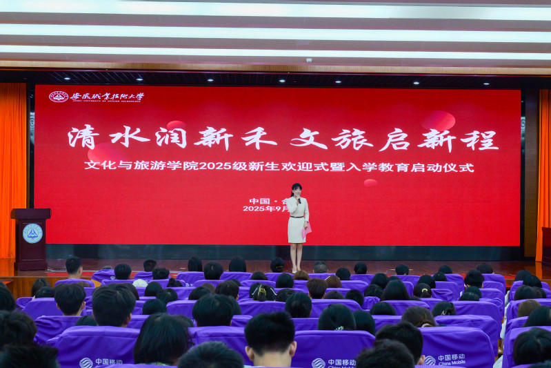 9月8日上午,安徽职业技术大学文化与旅游学院“清水润新禾 文旅启新程”2025级新生欢迎式暨入学教育启动仪式在学术报告厅举行。学院党政负责人、全体辅导员、教师代表与2025级全体新生齐聚一堂,共同见证这一庄严而温暖的时刻。