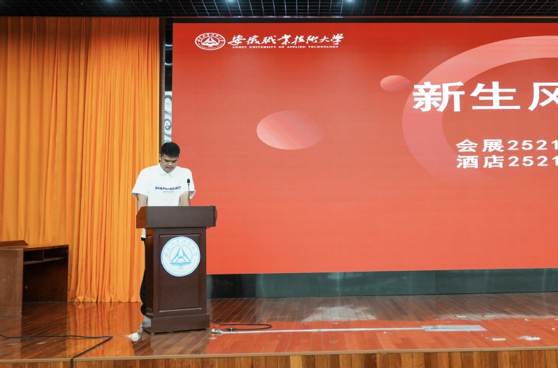 仪式在雄壮的国歌声中拉开帷幕。院长童登峰首先致欢迎辞,他表示,在学校升格为安徽职业技术大学的重要时刻,学院迎来了全新的发展机遇。他寄语新生要珍惜这个新时代赋予的机遇,在职业教育沃土中扎根生长、抽穗扬花,成为新时代文旅行业的栋梁之才。