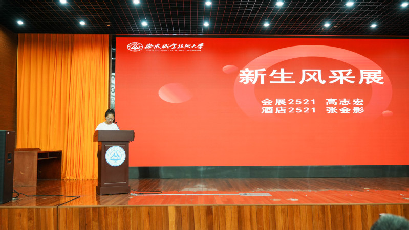会展2521班高志宏、酒店2521班张会影作为新生代表发言,她们用青涩而坚定的声音,抒发了对大学生活的美好憧憬和立志成才的坚定决心。