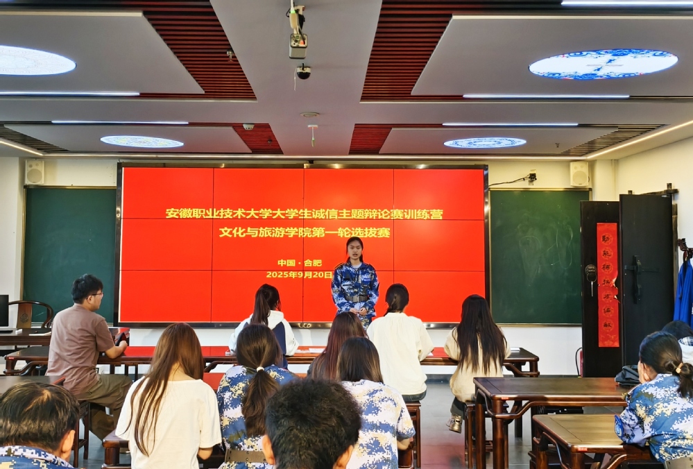 为深入推进校园诚信文化建设,202592022,文化与旅游学院团总支顺利举办安徽职业技术大学大学生诚信主题辩论赛训练营学院选拔赛。