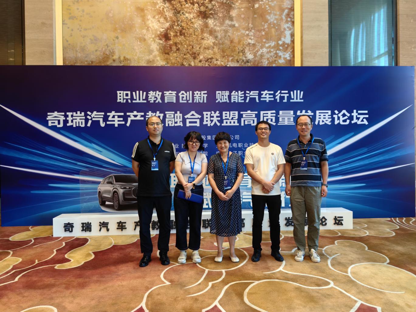 为深入落实《职业教育产教融合赋能提升行动实施方案(2023-2025 年)》《关于深化现代职业教育体系建设改革的意见》等政策要求,聚焦汽车行业产教融合,对接产业发展需求,现代商务学院院长杜淑琳带领骨干教师团队于8月22日-23日赴芜湖参加“职业教育创新赋能汽车行业——奇瑞汽车产教融合联盟高质量发展论坛”。