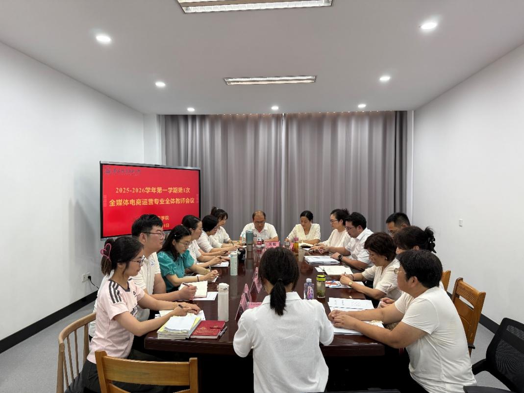 全媒体电商运营教研室会议在至勤楼201举行。:作为学院新升格的职教本科专业,全媒体电商运营专业将聚焦数字营销与产业融合,致力于培养高素质技术技能人才。与会教师围绕暑期工作成果、新学期教学计划及专业建设展开交流。教研室主任雷纶源系统梳理了当前问题,并提出下一步工作思路与开学安排。党总支副书记程基鹏通报了职教本科招生数据,强调全体教师应坚守育人初心,团结奋进、共谋新篇。