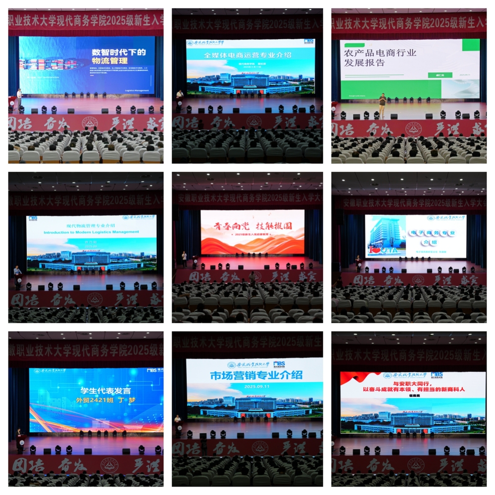 本次大会不仅是一次迎新活动,更是一次深刻的理想信念教育。安徽省产业教授戚仁龙、尹道鹏分别从电子商务和物流行业的角度,分享了行业发展动态与人才需求,拓宽了学生的职业视野,增强了专业信心。在专业认知教育环节,雷纶源、丁娟娟、朱丽丽、许乃如四位老师分别对全媒体电商、市场营销、电子商务、现代物流管理四个专业进行了系统介绍,帮助新生明确学习方向,树立专业目标。院党总支组织员范大凤为新生作了入党入团启蒙教育,详细讲解了党团基本知识、入党流程和青年使命,引导同学们积极向组织靠拢,树立远大理想,争做时代新人。老生代表丁梦和教师代表崔巍巍分别发言,她们分享了大赛经验和教师寄语,激励新生勤奋学习、勇于实践。院党总支副书记程基鹏在总结讲话中鼓励同学们坚定理想信念、锤炼过硬本领,在现代商务学院书写无悔青春。