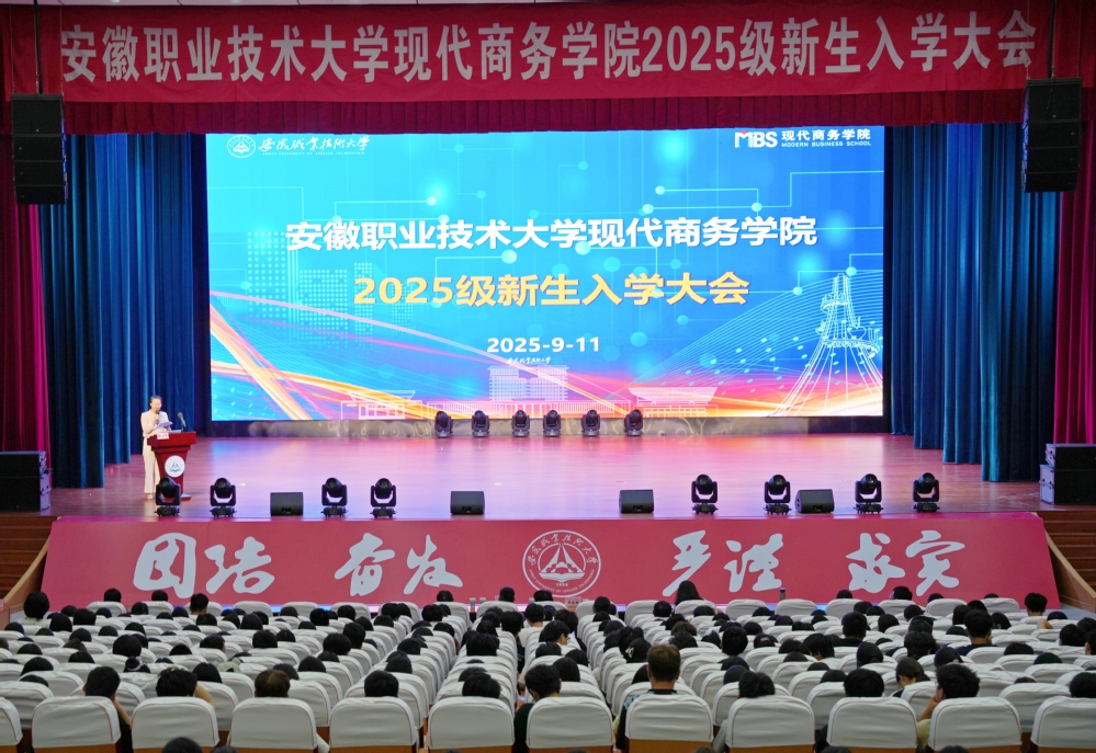 2025年9月11日下午,现代商务学院在至立会堂举行2025级新生入学大会。校领导、学院党政负责人、师生代表及全体2025级新生共同参加了此次大会。会议由团总支书记丁润青主持。