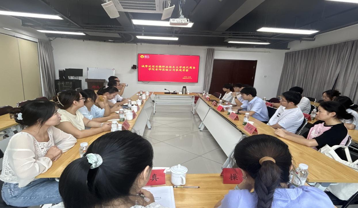 为进一步加强实践教学过程管理,深化校企协同育人机制,了解学生实践教学情况,9月17日,现代商务学院党总支成员以及实践教学指导老师、辅导员老师一行前往安徽邻几便利店有限公司调研并看望参与实践教学学生。邻几企业人力资源经理李辉对到访一行表示热烈欢迎。