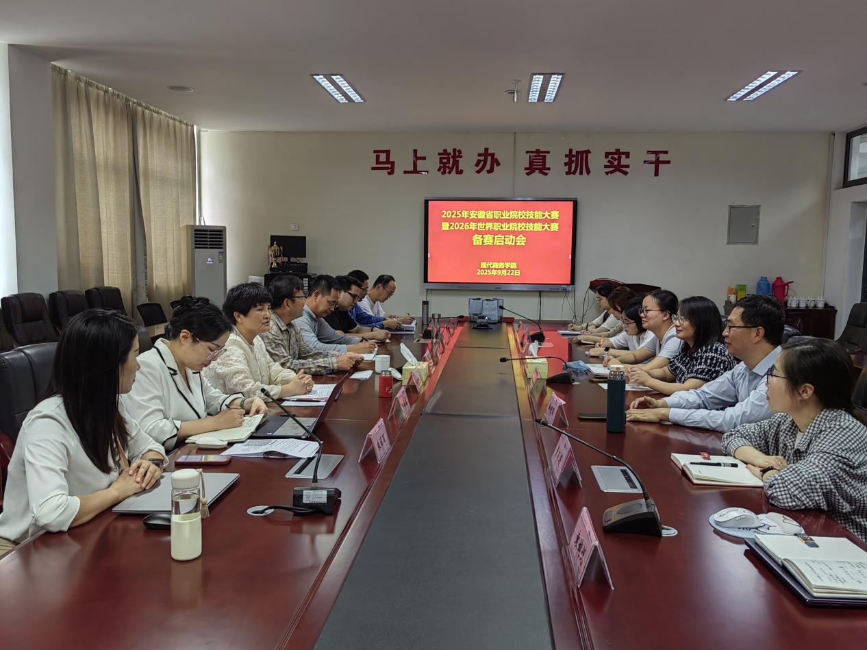 2025年9月22日下午,现代商务学院“2025年安徽省职业院校技能大赛暨2026年世界职业院校技能大赛备赛启动会”在至勤楼305会议室顺利召开。会议特邀计算机与信息技术学院副院长胡继胜莅临指导,现代商务学院党政负责人、学院大赛办主任及部分骨干教师参会,会议由杜淑琳主持。