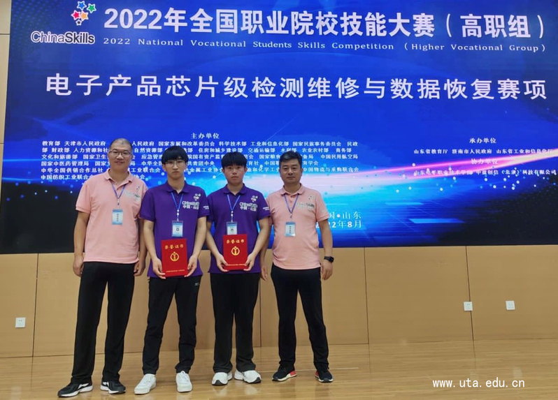 2022年8月24至25日,全国职业院校技能大赛(高职组)“电子产品芯片级检测维修与数据恢复”赛项在山东电子职业技术学院举行。我院计算机与信息技术学院、智能制造学院学子李欢、左迎新同学在杜江淮、马卫民两位老师的精心指导下,不畏苦累、奋勇拼搏,最终取得了全国三等奖的好成绩。