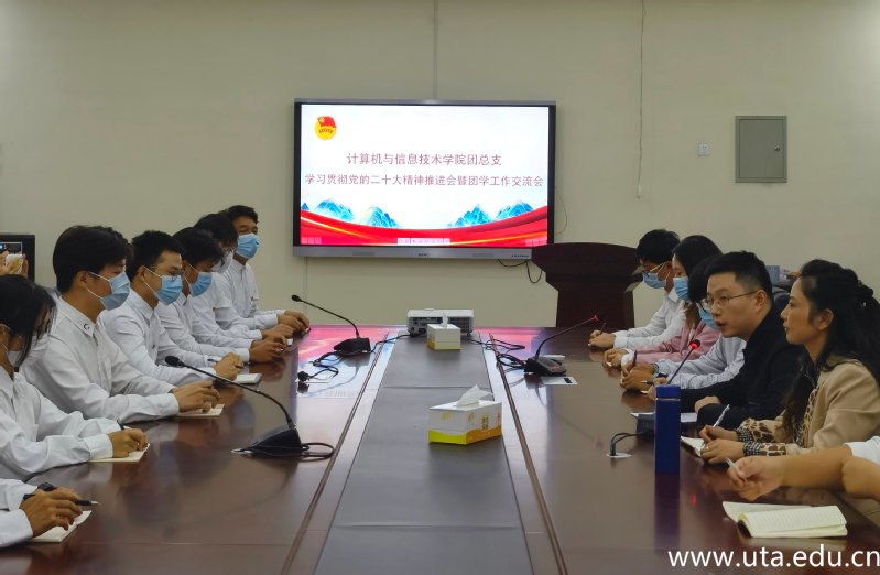 为纵深推进学习贯彻党的二十大开幕会及后续会议相关精神,更好地落实相关团学工作,计算机与信息技术学院团总支于10月18日在信息楼401室召开学习贯彻党的二十大精神推进会暨团学工作交流会,学院党总支负责人王丹、各班级团支部书记及部分团总支学生会干部参会,会议由团总支书记孟昕主持。