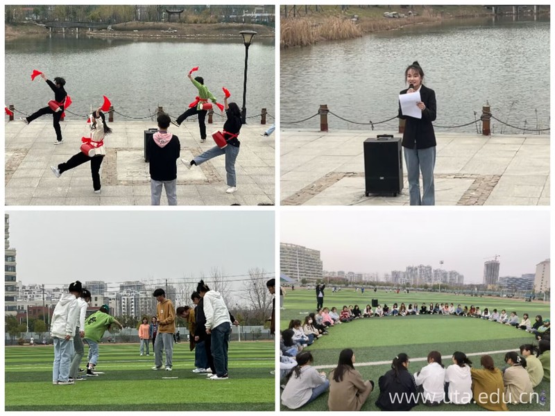 团建活动分别在清水湖边和足球场举行,活动分腰鼓表演、主题演讲、欢乐游戏、促膝谈心几个阶段。腰鼓表演在践行传统优秀文化中感悟了文化自信的内涵;主题演讲中,抒发了新时代女性时不我待、只争朝夕、勇立潮头的巾帼风采;在“珠行万里”、“搭桥过河”、“你演我猜”等游戏中,女同学们团结协作,配合默契,迎接了一个又一个挑战,活动现场欢声笑语不断;学院专职辅导员吴桂林老师与同学们相邻而坐,沟通交流,并为同学们提出学习与生活上的相关建议。活动末尾,学院党总支负责人王丹与大家合影留念。