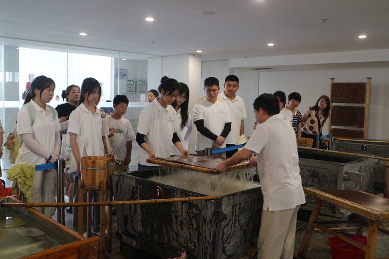 轻似蝉翼白如雪,抖似细绸不闻声。中国宣纸文化园的宣纸标本与工坊里百道工序的实操场景,构成活态传承的立体教材。团队成员随匠人舀浆、摇帘、晒纸,在竹帘起落间感悟片纸三年功的匠魂。宣纸封存着历史的沧桑、文明的厚重,让唐宋的月光、元明清的烟雨至今仍能在宣纸上洇开涟漪,成为文明长河中永不褪色的记忆载体。在这里,传统技艺与现代技术完成跨时空握手。