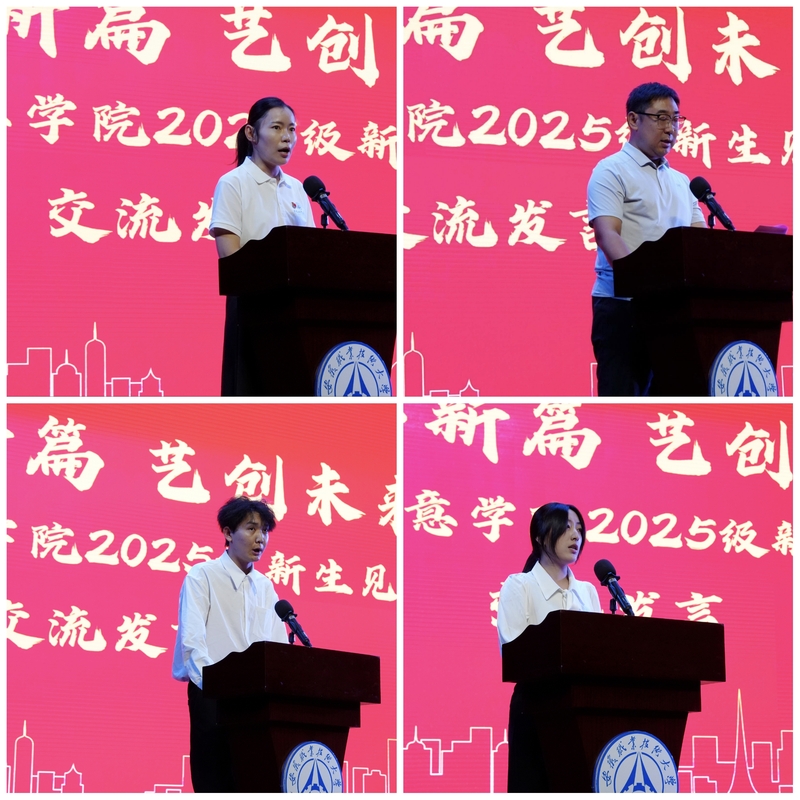 教师代表张晟、新生辅导员代表袁风竹、老生代表媒体2322班巩其加甫、新生代表视传2521班杨雨分别围绕专业学习、立德树人、成长经历和生涯规划作了交流发言。