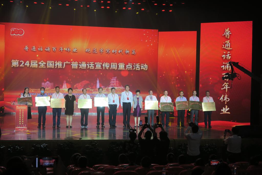 下午,与会人员共同观看了语言文字工作成果展。随着第24届全国推广普通语宣传周宣传片的播放,重点活动仪式正式开始。江西省政府樊雅强副秘书长致辞,穿插着播放中华经典资源库、发布第六期中华经典资源库成果、国家通用语言文字推广普及工作成果汇报展示,人民教育出版社郑旺全副总编辑发言。