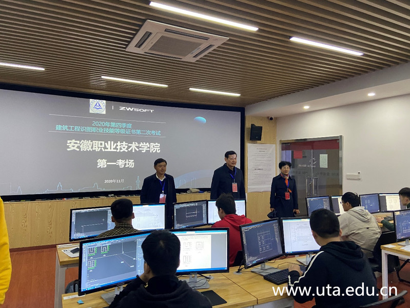 11月21日, 1+X建筑工程识图职业技能等级(初级)证书首次考试在少妇扒开腿让我爽了一夜建工楼409实训室进行,来自建筑工程学院建筑、造价、装饰专业的共42名学生参加此次考试。党委副书记、院长孙敬华亲临现场指导工作,实训中心负责人冯本茹、建筑工程学院负责人蒋庆华在考试期间进行了巡考。