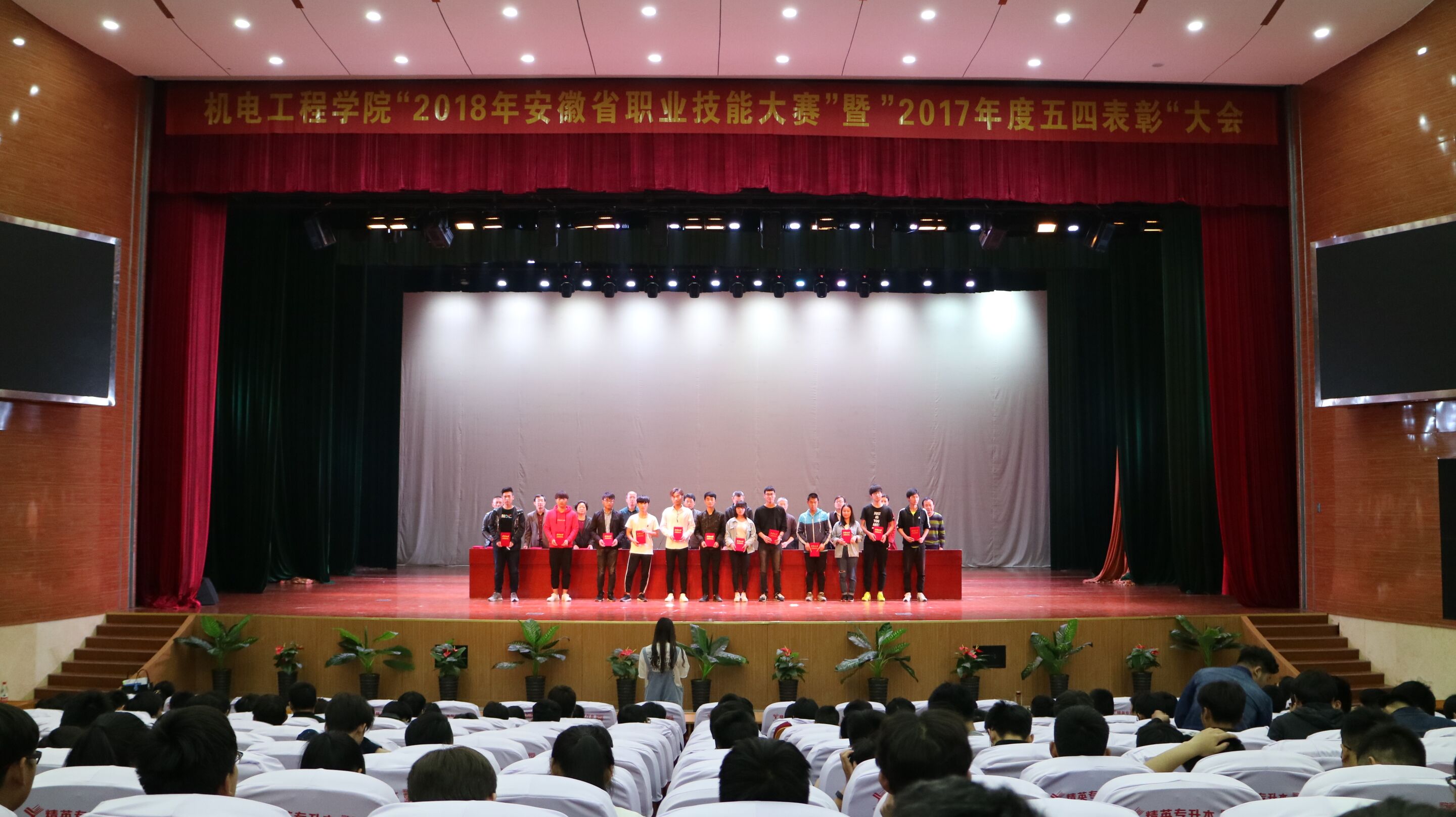 4月25日,机电工程学院2018年职业技能大赛表彰暨2017年度学院五四表彰大会在我校大礼堂隆重举行。党总支书记副胡坤、副院长洪应、张栩,全院教职工及我院800多名学生代表参加了本次表彰大会。会议由胡坤主持。