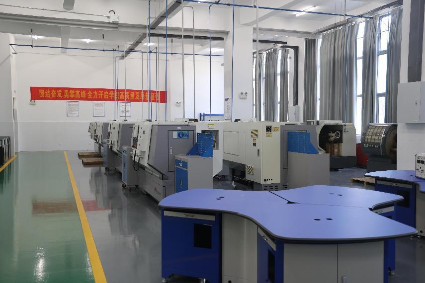 数控车加工实训室2018年11月建成,设备资产202.2万元,使用面积360平方米,是开展数控实践教学、科研、社会服务的重要基地。
