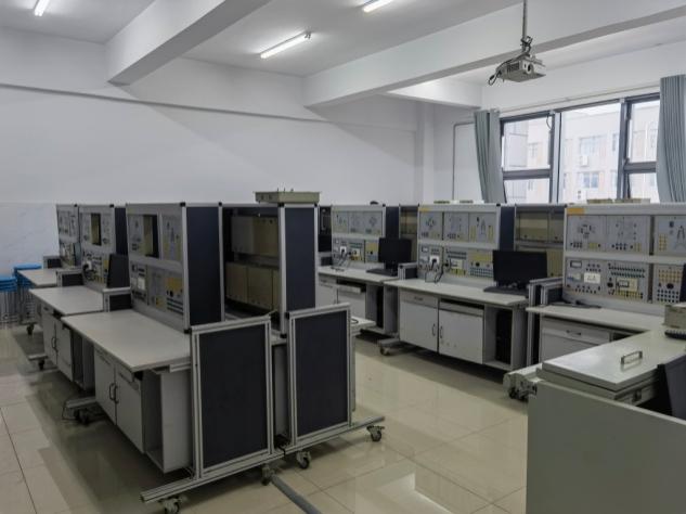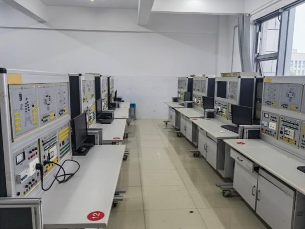 实训室经过数次更新,于2017年配备了三菱PLC主流机型以及触摸屏和变频器,除实现PLC的基本实训外,还能实现可编程终端的编程及电机的变频调速控制。