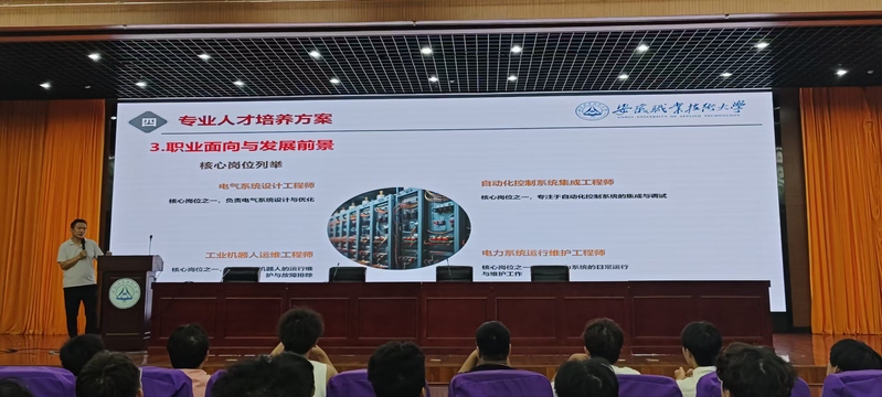 在专业介绍环节,智能制造工程技术和电气工程及自动化2个职业本科专业以及数字化设计与制造技术、智能控制技术、机电一体化技术、电气自动化技术、机械制造及自动化等5个专科专业的专业负责人从专业背景、培养目标、课程体系、就业方向和发展前景等多个维度全面深入解读了各专业的人才培养体系,并就如何学好专业课程、提升实践能力作了详细说明。在互动答疑环节,学生们踊跃提问,专业老师耐心解答,并鼓励同学们积极参与实践教学,不断提升综合素质和专业技能。