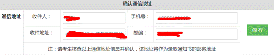 请考生首先查看通信地址、联系方式等,并确认。该地址将作为录取通知书的邮寄地址。