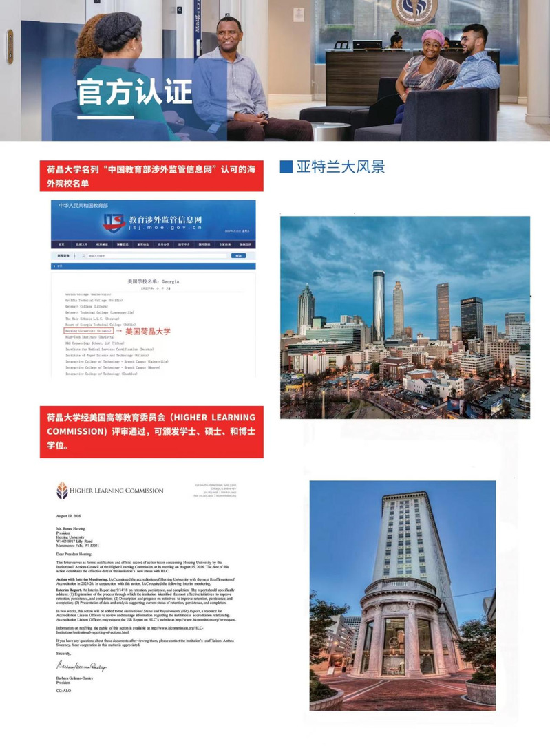 美国荷晶大学(Herzing University)始建于1965年,是一所融教学、科研为一体的国际化教学组织和综合性院校,在世界享有良好的声誉。学校主校区位于美国的亚特兰大市中心,校园附近交通便利,是教育部认可的海外院校。